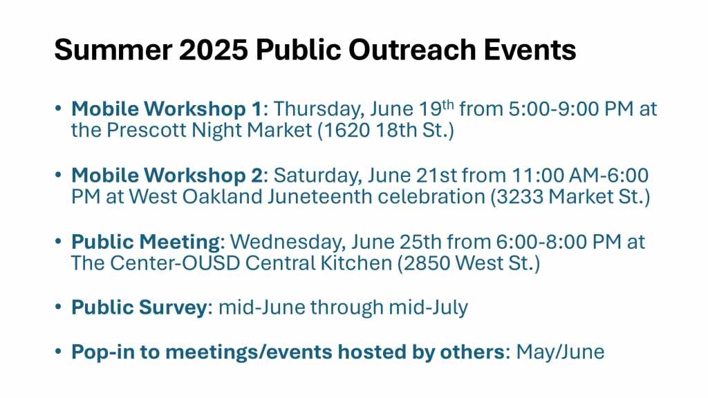 At the June 12, 2025 BPAC meeting, Caltrans staff will provide an update on the Vision 980 Study and upcoming summer outreach events. Caltrans is seeking public feedback on three potential scenarios for reimagining the I-980 corridor between I-880 and I-580. Interested members of the public can sign up for email updates on the project website, where the new public survey and details on June in-person events will be posted.