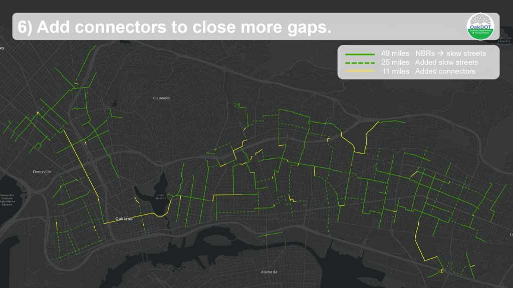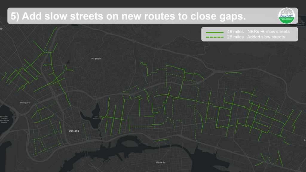- Additional streets will be added to the slow streets network to create slow streets connections between more neighborhoods.