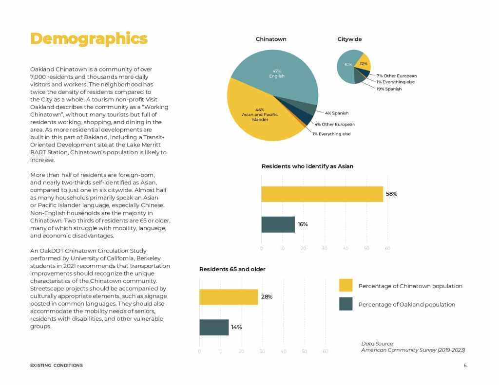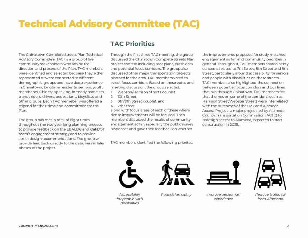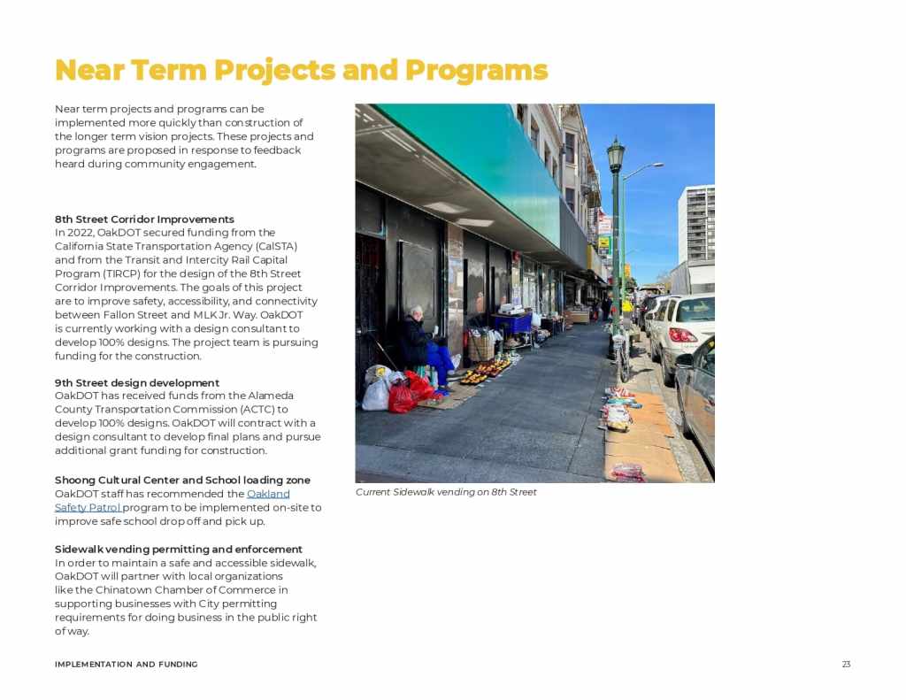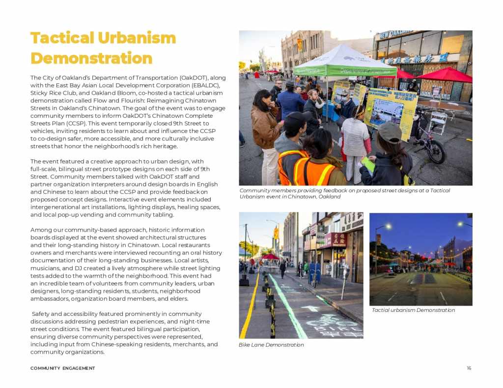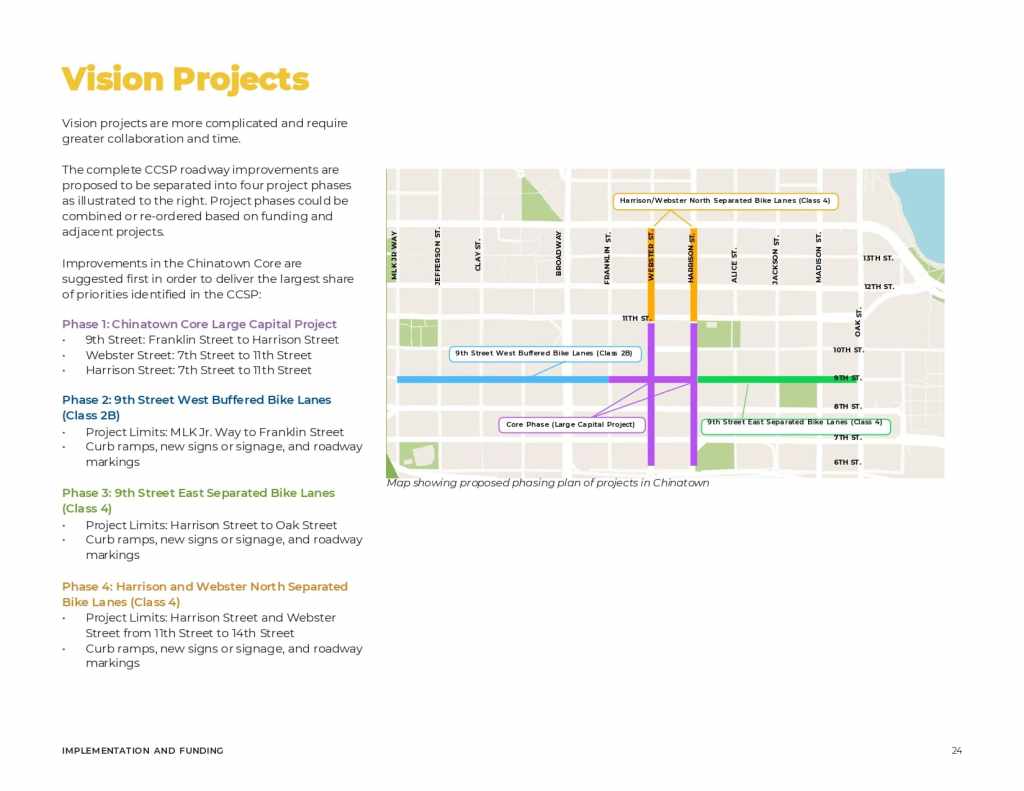At the July 17, 2025 BPAC meeting, Manuel Corona, Transportation Planner in the Major Project Division at OakDOT, presented the completed Chinatown Complete Streets Plan. The Plan includes an existing conditions evaluation, community engagement, and the proposed conceptual plans for three corridors through Oakland Chinatown.