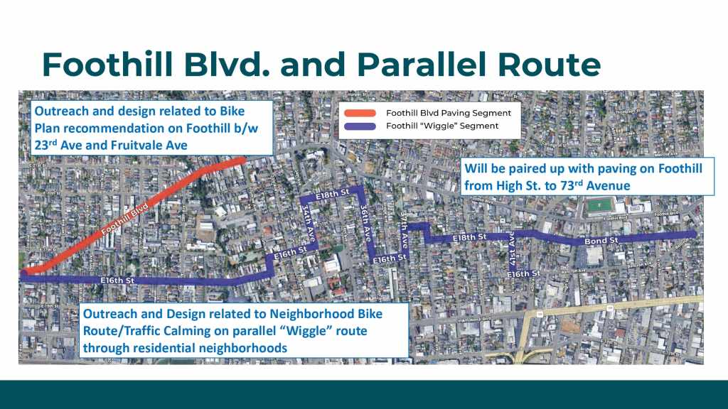 - Outreach and design related to Bike Plan recommendation on Foothill between 23rd Ave and Fruitvale Ave