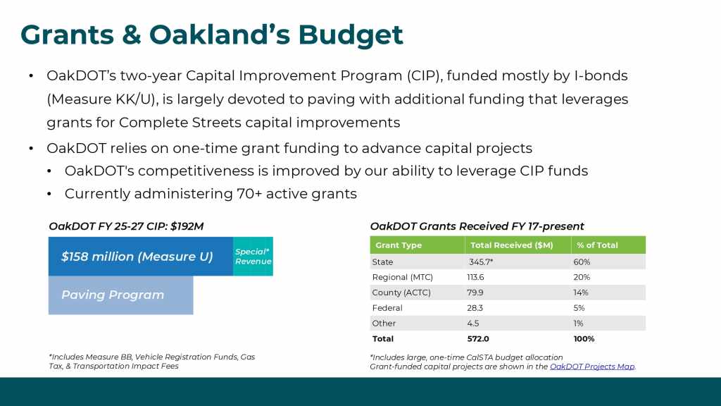 - Oakland’s adopted Capital Improvement Program (CIP) prioritization identifies priority projects for funding.