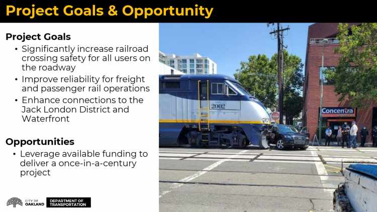 At the May 2, 2024 BPAC Infrastructure Committee meeting, Acacia Dupierre, Senior Transportation Planner of OakDOT’s Major Projects Division, will present on the Embarcadero West Rail Safety and Access Improvements project. The project will significantly increase multi-modal safety and accessibility along the Embarcadero West corridor and surrounding neighborhoods while reducing delays for freight and passenger rail.